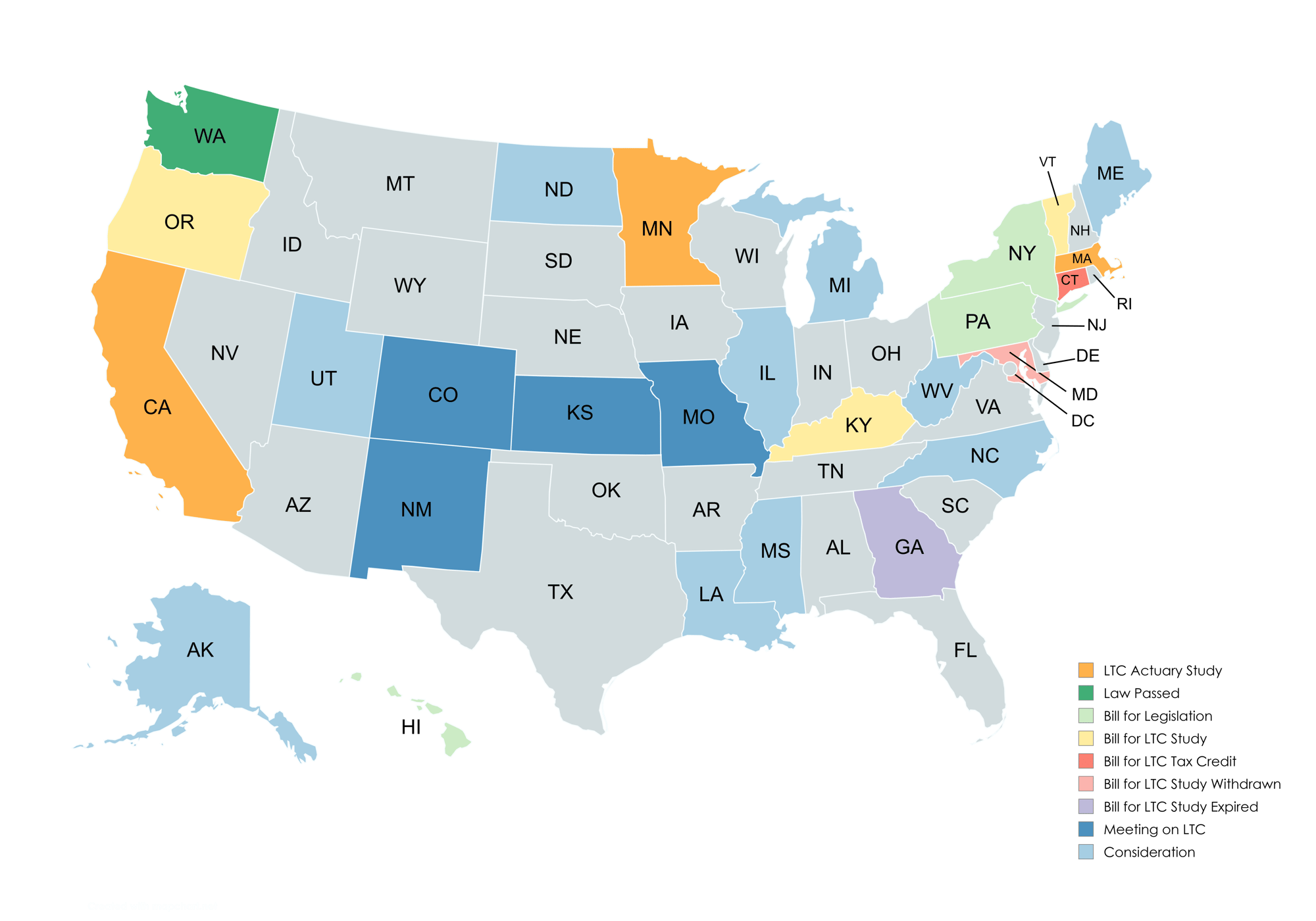 2019 - the bill establishes The Long-Term Care Insurance Task Force to explore the feasibility of developing and implementing a culturally competent statewide insurance program for long-term care services and supports. This includes the design of the program including eligibility, financing, benefits, and other key topics related to administration.
